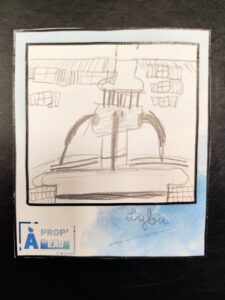 Le jeudi suivant, la classe, grâce à une petite balade, est partie à la rencontre du patrimoine du village de Craponne-sur-Arzon. Le groupe s’est d’abord attardé sur l’une des fontaines du village, au niveau de la place du fort. Tels de vrais photographes professionnels, chaque élève a observé la fontaine sous différents angles à l’aide d’appareils photo en carton.