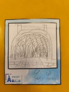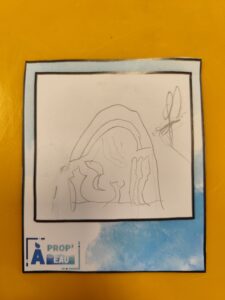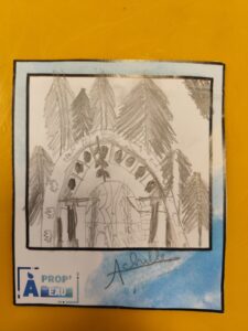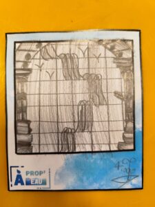 Le groupe s’est ensuite rendu dans le jardin Henri-Vinay, plus particulièrement devant l’œuvre de Pia Hinz » Phaos » qu’ils ont ensuite dessiné. Voici le superbe résultat ! :